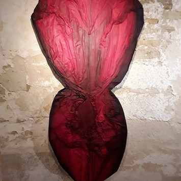 Je travaille à partir de draps anciens récupérés, en lin, chanvre ou coton, que je transforme en toile libre. Portant une mémoire intime, ils deviennent le support d'une exploration des textures: Les fragiliser, les traverser, les effiler, les tordre, les plier, les coudre.